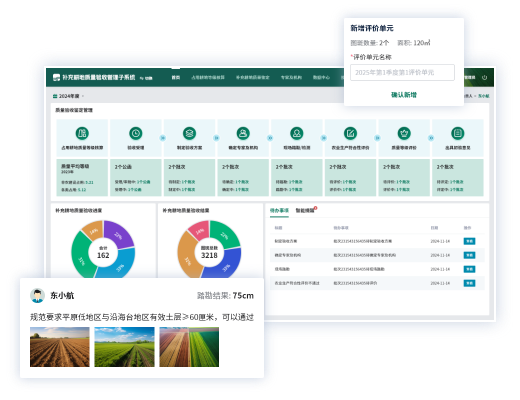 補充耕地質(zhì)量驗收管理平臺通過數(shù)智化手段為河北省補充耕地質(zhì)量驗收工作提供了全流程、標準化、智能化的解決方案,平臺以縣、市、省三級統(tǒng)籌管理為核心,實現(xiàn)占用耕地等級核算、補充耕地質(zhì)量鑒定功能線上化,解決了傳統(tǒng)工作中依賴人工操作導致的效率低、驗收標準不同意等問題。